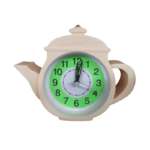 Επιτραπέζιο ρολόι-ξυπνητήρι σε σχέδιο τσαγιέρα και πρακτικό μέγεθος που μπορεί να ταιριάξει σε κάθε χώρο.