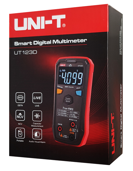 Το ψηφιακό πολύμετρο UT123D έχει σχεδιαστεί για να αναγνωρίζει αυτόματα τάση AC/DC, αντίσταση, δίοδο και την ροη του ρεύματος. Όλες οι λειτουργίες μέτρησης μπορούν να επιλεχτούν χειροκίνητα με το πάτημα ενός κουμπιού. Ο συμπαγής σχεδιασμός και η οθόνη EBTN το καθιστούν ένα εξαιρετικό εργαλείο για το σπίτι αλλά και την εργασία σε σκοτεινό περιβάλλον.