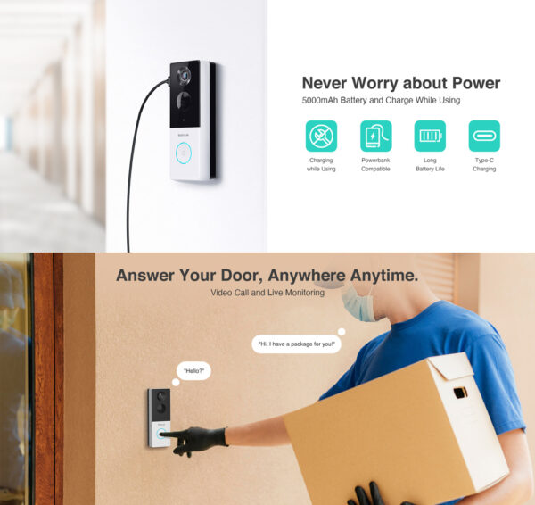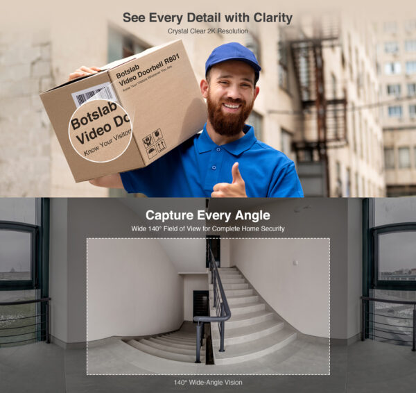 Smart κουδούνι της Botslab με ενσωματωμένη κάμερα που μεταφέρει εικόνα υψηλής ανάλυσης 2K.