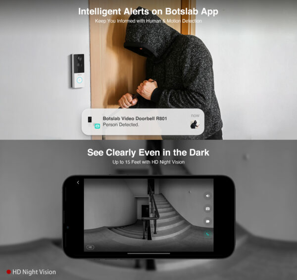 Συνδέεται εύκολα με συσκευή smartphone μέσω της εφαρμογής Botslab ώστε να μπορείτε να ελέγχετε ασύρματα το κουδούνι, να παρακολουθείτε live εικόνα άλλα και να απαντάτε στις κλήσεις μέσω του smartphone σας.