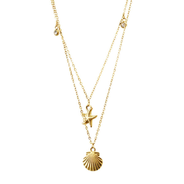 Ατσάλινο Κολιέ Με Διπλή Αλυσίδα Και Κρεμαστά Στοιχεία