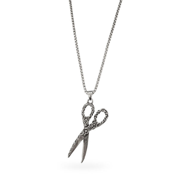 Unisex αλυσίδα από ανοξείδωτο ατσάλι με εντυπωσιακό μοτίφ ψαλιδιού, ιδανικό για επαγγελματίες κομμωτές ή για όσους αγαπούν τα ιδιαίτερα και εναλλακτικά κοσμήματα. Με μήκος αλυσίδας 58cm και κρεμαστό 5cm, προσθέτει δυναμικό και μοντέρνο χαρακτήρα σε κάθε εμφάνιση.