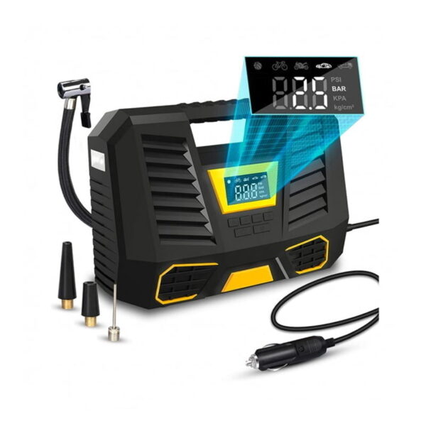 Κατασκευασμένη από μίγμα μετάλλων και ABS πλαστικό. Με καλώδιο τροφοδοσίας 3m, φουσκωτό σωλήνα με πλεκτό νάυλον, ανθεκτικό στη φθορά και ψηφιακή ένδειξη πίεσης, που επιτρέπει τη ρύθμιση της πίεσης με ακρίβεια, πατώντας μόνο 1 κουμπί.