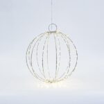 ΑΣΗΜΙ ΜΕΤΑΛΛΙΚΗ ΜΠΑΛΑ ΦΩΤΙΖΟΜΕΝΗ 30cm, 144 MINI LED, ΣΤΑΘΕΡΟΣ ΜΕΤΑΣΧΗΜΑΤΙΣΤΗΣ, ΑΣΗΜΙ ΧΑΛΚΙΝΟ ΚΑΛΩΔΙΟ, ΘΕΡΜΟ ΛΕΥΚΟ LED, ΠΡΟΕΚΤΑΣΗ ΠΑΡΟΧΗΣ 3m, IP44
