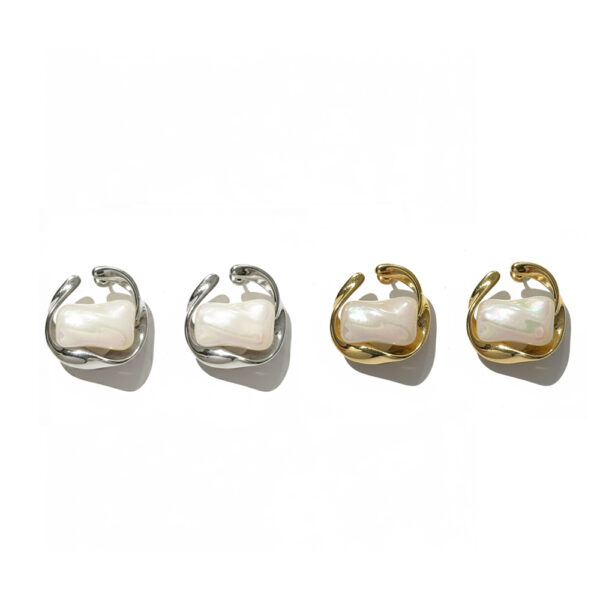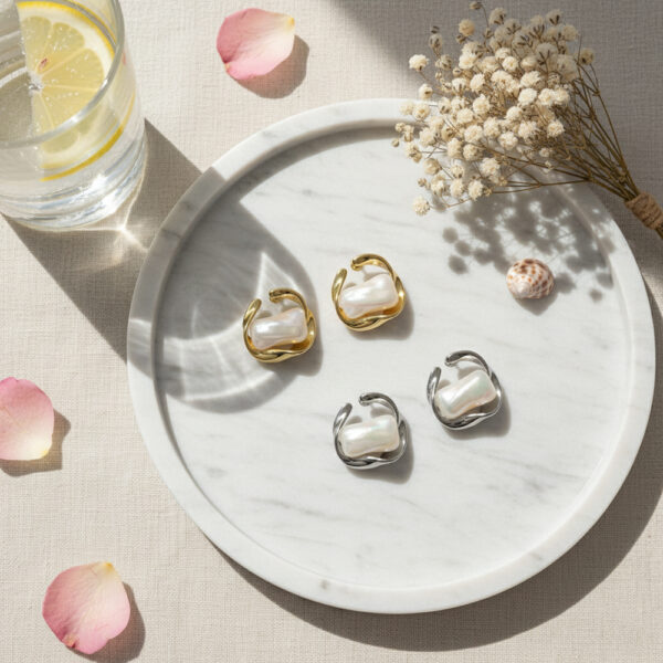 Κομψά ατσάλινα σκουλαρίκια με μαργαριταρένα πέτρα, διαθέσιμα σε χρυσό και ασημί χρώμα. Ο μοντέρνος, καμπυλωτός σχεδιασμός τους αγκαλιάζει τη λάμψη της πέτρας, δημιουργώντας ένα εκλεπτυσμένο και θηλυκό αποτέλεσμα. Ιδανικά για καθημερινές αλλά και βραδινές εμφανίσεις, προσθέτουν φινέτσα και διακριτική πολυτέλεια σε κάθε look. Ανθεκτικά, υποαλλεργικά και διαχρονικά.