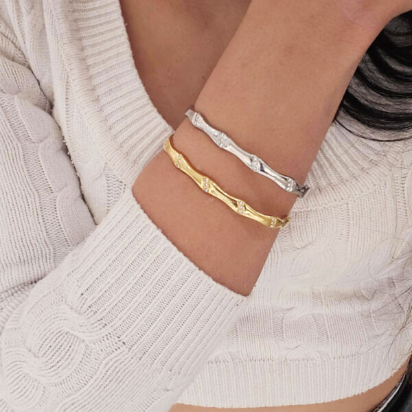 Γυναικείο βραχιόλι χειροπέδα, φτιαγμένο από ανοξείδωτο ατσάλι άριστης ποιότητας. Μπορεί να συνδυαστεί εύκολα με όλα σου τα κοσμήματα και είναι ιδανική επιλογή σε οποιαδήποτε έξοδό σου.