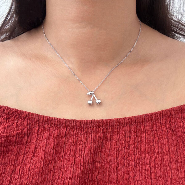 Ατσάλινο Κολιέ με Μοντέρνο Κερασάκι – Ασημί