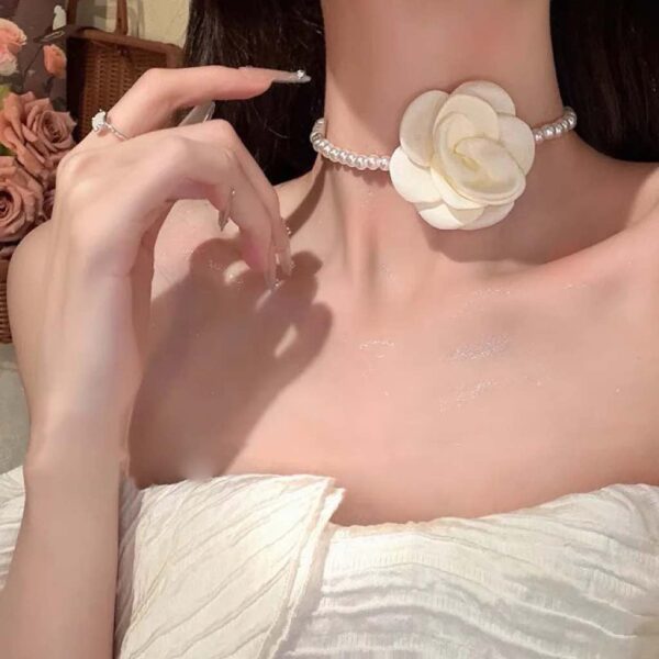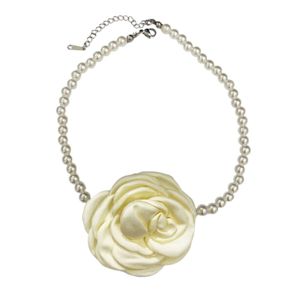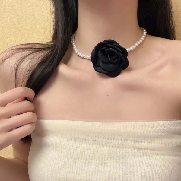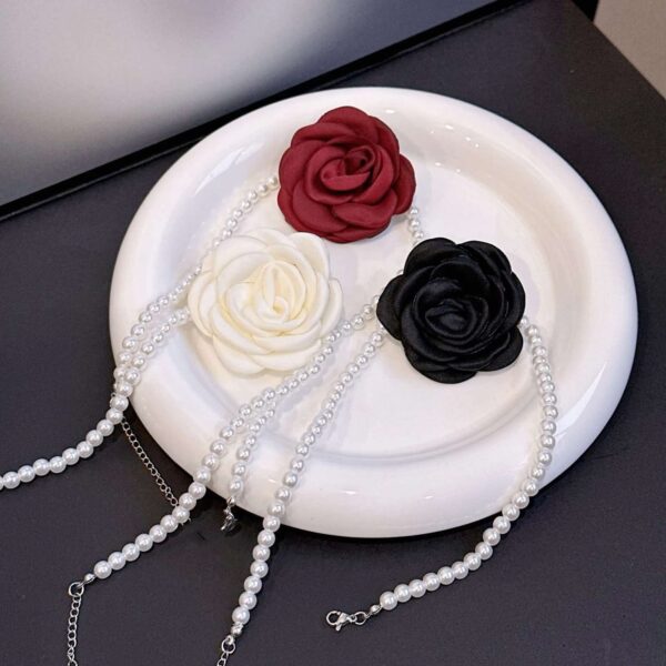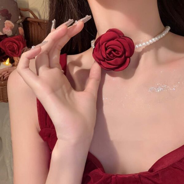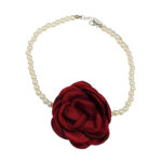 Ατσάλινο Κολιέ Με Πέρλες Και Τριαντάφυλλο – Κόκκινο