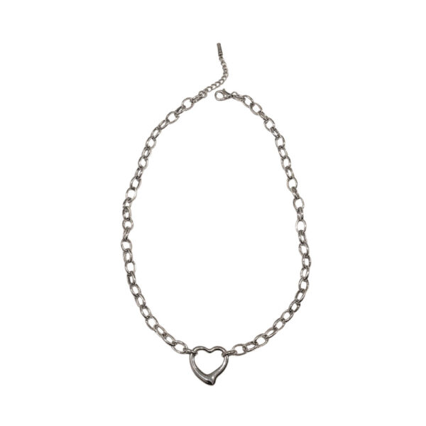 Ατσάλινο κολιέ με χοντρή αλυσίδα και καρδιά – Ασημί
