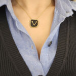 Ατσάλινο Μονόγραμμα ”V” Με Μαύρες Και Χρυσές Χάντρες