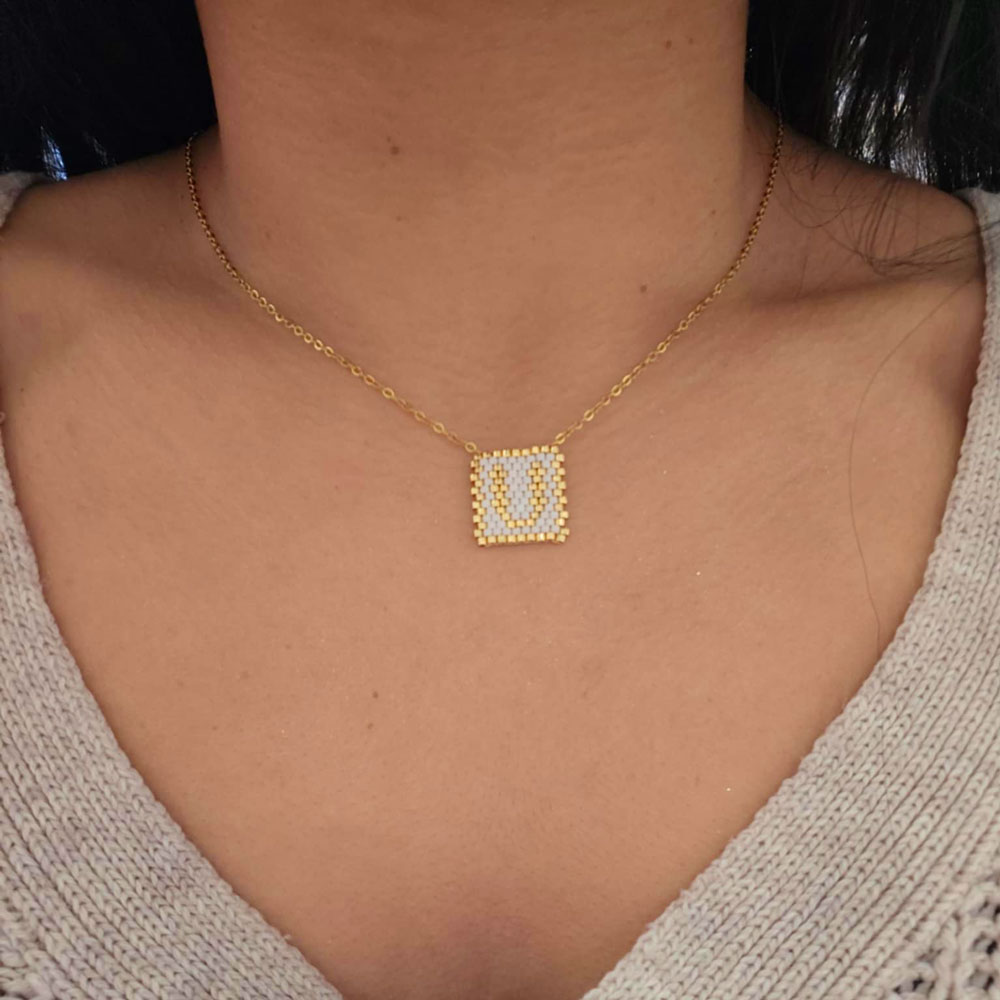 Γυναικείο Ατσάλινο Κολιέ Με Χρυσή Αλυσίδα Και Κρεμαστό Μονόγραμμα Με Μαύρες Και Χρυσές Χάντρες.Η Αλυσίδα Διαθέτει Αυξομείωση Και Προσαρμόζεται Στο Ύψος Που Επιθυμείτε.Είναι Υποαλλεργικά,Και Δεν Μαυρίζουν