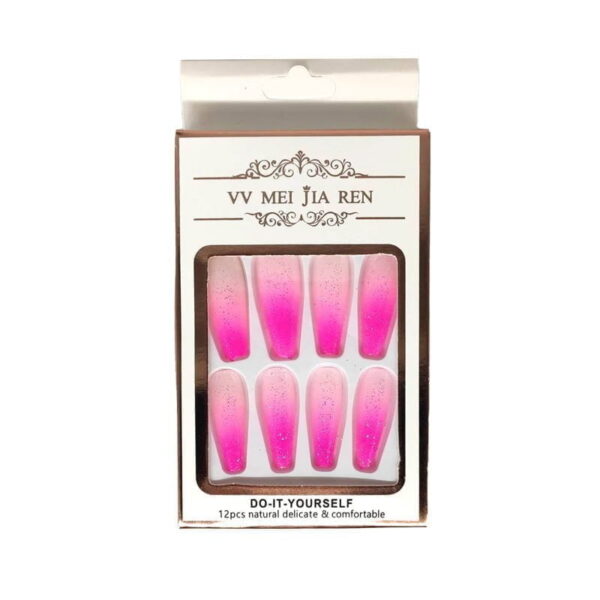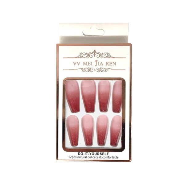 Οδηγίες χρήσης: Πιέστε το ψεύτικο νύχι πάνω στο φυσικό για τουλάχιστον 10 δευτερόλεπτα. Για μεγαλύτερη διάρκεια, πιέζετε τα ψεύτικα νύχια απαλά μερικές φορές την ημέρα, ειδικά μετά την επαφή με το νερό. Για να τα αφαιρέσετε, βάλτε τα χέρια σας σε νερό για 10 λεπτά και αφαιρέστε κάθε νύχι απαλά, ξεκινώντας από το πλάι.