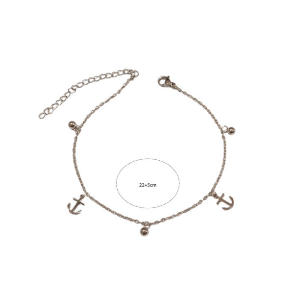 μοντέρνο βραχιόλι ποδιού με διακριτική αλυσίδα, διακοσμημένο με κρεμαστά στοιχεία σε σχήμα άγκυρας και στρογγυλές μεταλλικές μπίλιες. διαθέτει ρυθμιζόμενο μήκος για τέλεια εφαρμογή. διατίθεται σε χρυσό και ασημί, ιδανικό για καλοκαιρινές εμφανίσεις και θαλασσινά vibes.