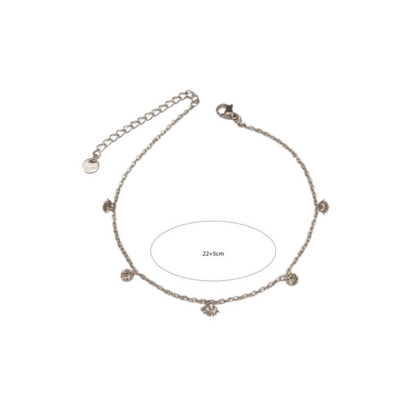 μοδάτο βραχιόλι ποδιού με λεπτή αλυσίδα και διακριτικά κρεμαστά στοιχεία σε σχήμα ματιού και λαμπερούς κρυστάλλους. διαθέτει ρυθμιζόμενο μήκος για άνετη εφαρμογή και προσφέρεται σε δύο αποχρώσεις: χρυσό και ασημί. μια μοντέρνα και συμβολική επιλογή για τις καλοκαιρινές σου εμφανίσεις.