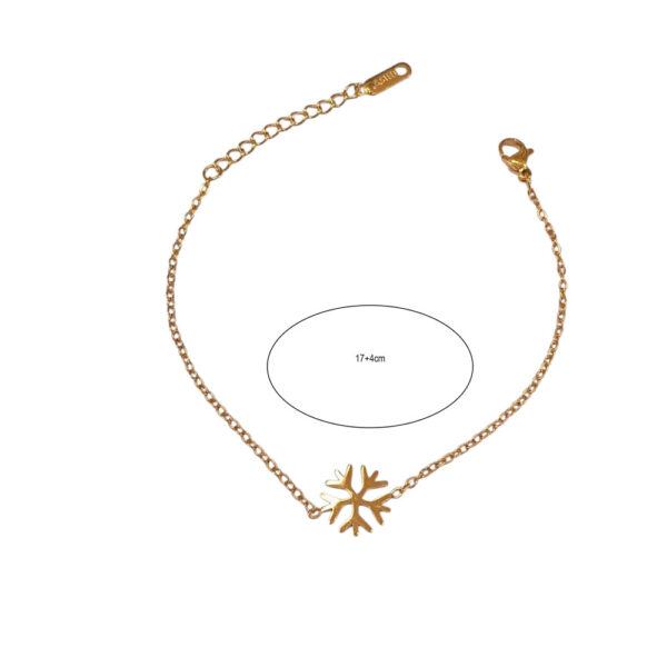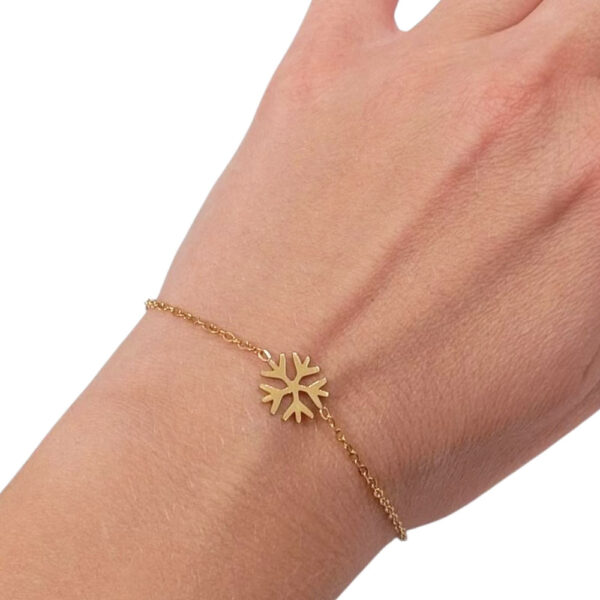 Ατσάλινο βραχιόλι με λεπτή αλυσίδα και εντυπωσιακό μοτίφ χιονονιφάδας στο κέντρο. Μινιμαλιστικό και ταυτόχρονα ξεχωριστό, αποτελεί την τέλεια προσθήκη για τις χειμερινές εμφανίσεις σου ή ένα γλυκό δώρο με χειμωνιάτικη διάθεση. Διαθέσιμο σε χρυσό και ασημί χρώμα. Δεν μαυρίζει, δεν προκαλεί αλλεργίες.
