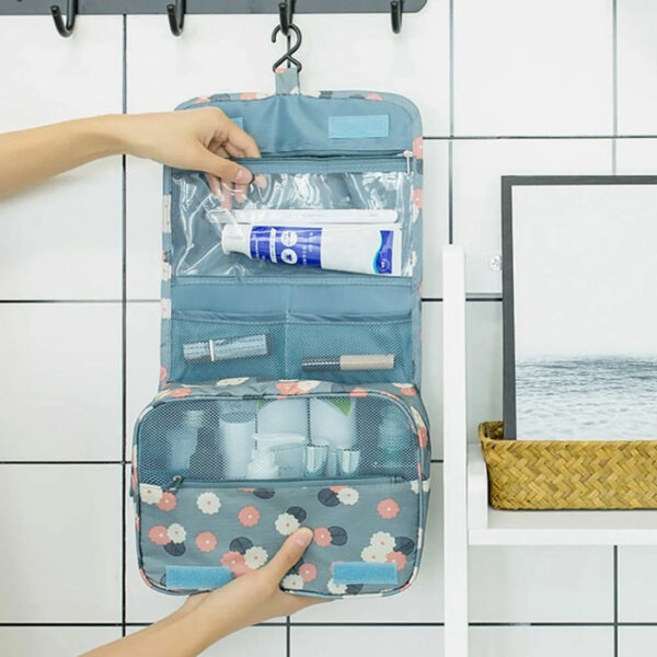 Γυναικείο νεσεσέρ, ιδανικό για ταξίδια και εκδρομές. Διαθέτει πολλαπλές εσωτερικές θέσεις για την τοποθέτηση προϊόντων περιποίησης και καλλυντικών. Είναι κατασκευασμένο από αδιάβροχο υλικό και διαθέτει βολικό γάντζο κρεμάσματος.