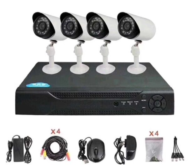 Σύστημα καταγραφικού δικτύου 4 καναλιών, με 4 κάμερες με αισθητήρα κίνησης και πλήρες σετ σύνδεσης.