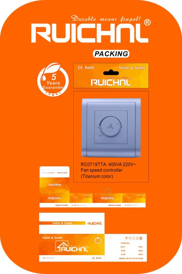 Εντοιχιζόμενος ρυθμιστής στροφών αέρα – 400VA – 220V, το πακέτο διαθέτει όλα τα απαιτούμενα μέρη για εύκολη και ασφαλή εγκατάσταση.