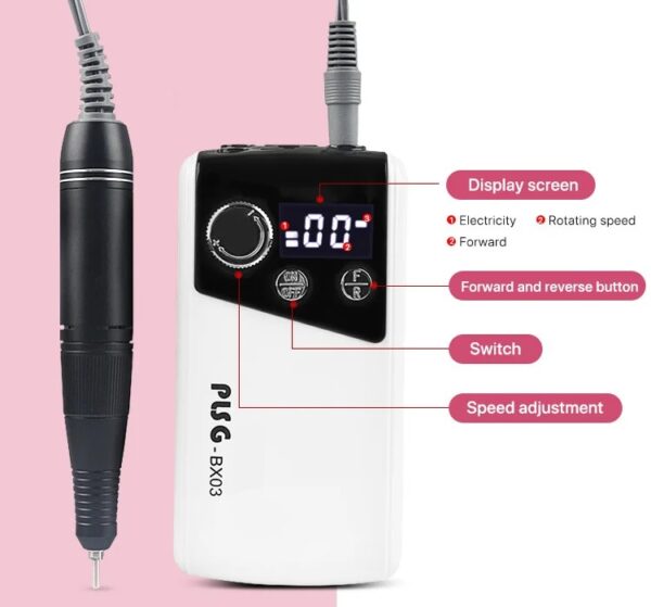 Επαγγελματικός, επαναφορτιζόμενος τροχός μανικιούρ-πεντικιούρ με βάση στήριξης για το στυλό. Διαθέτει ρυθμιζόμενη ταχύτητα, λειτουργία μειωμένου θορύβου και δονήσεων και εργονομικό σχεδιασμό για εύκολη και άνετη χρήση.