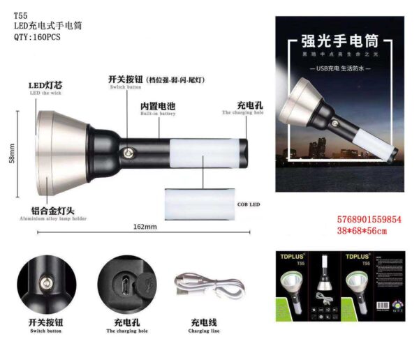 Επαναφορτιζόμενος φακός LED – T55 – 559854