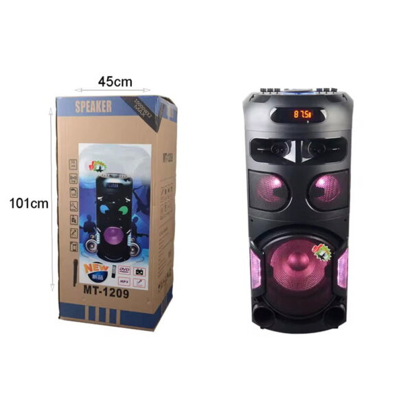 Επαναφορτιζόμενο Ηχείο Bluetooth με Μικρόφωνο,Τηλεχειριστήριο και LED Φως MT-1209 – Bluetooth Speaker