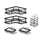 Σετ επιτοίχια ράφια οργάνωσης μπάνιου, με 2 γωνιακά ράφια, 2 θήκες σαπουνιού/σφουγγαριού και 1 θήκη για οδοντόβουρτσες.