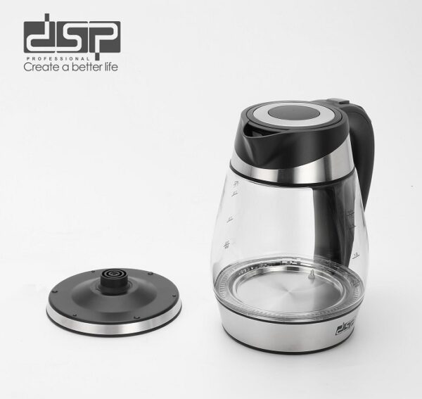 Ηλεκτρικός βραστήρας της DSP, υψηλής ισχύος και άμεσης θέρμανσης, με πρακτικό διαφανή σχεδιασμό και δυνατότητα επιλογής θερμοκρασίας.