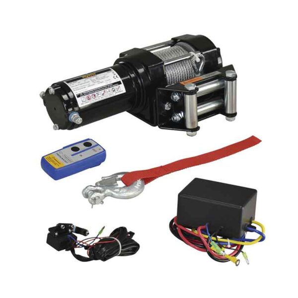Ισχυρό ηλεκτρικό βαρούλκο 12V με δύναμη έλξης 5000LBS (2268kg), ιδανικό για τζιπ, ATV, βάρκες και ρυμουλκά. Διαθέτει ανθεκτικό συρματόσχοινο, γάντζο με ιμάντα ασφαλείας και τηλεχειριστήριο για εύκολο και ασφαλές χειρισμό. Περιλαμβάνει μονάδα ελέγχου και πλήρες σετ καλωδίωσης για άμεση εγκατάσταση.