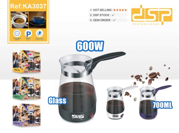 Γυάλινο ηλεκτρικό μπρίκι της DSP για ελληνικό καφέ και ζεστό νερό, εύχρηστο και πρακτικό, μεγάλης χωρητικότητας, για να έχετε άμεσα έτοιμο τον αγαπημένο σας ελληνικό καφέ ή να βράσετε νερό σε λίγα λεπτά.