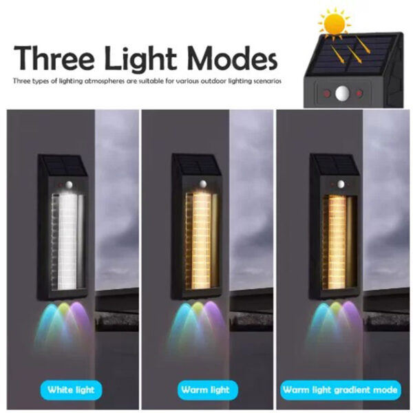 Φωτίστε τον εξωτερικό σας χώρο με απόλυτη αυτονομία και ασφάλεια με το ηλιακό φωτιστικό τοίχου HW 668-2. Διαθέτει αισθητήρα κίνησης και 3 λειτουργίες φωτισμού (λευκό, θερμό, εναλλασσόμενο θερμό) για να προσαρμόζεται στις ανάγκες σας. Ιδανικό για αυλές, μπαλκόνια, γκαράζ και εισόδους.