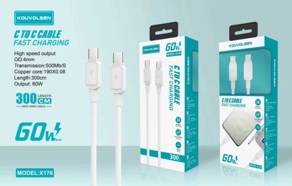 Καλώδιο φόρτισης & data – USB Type-C σε Type-C – Fast Charge – X176 – 3m – 60W – 901767