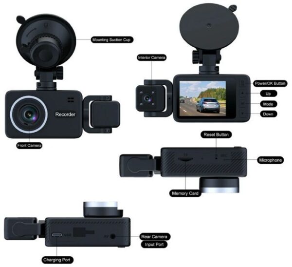 Καταγραφικό αυτοκινήτου με τριπλή κάμερα, υψηλή ανάλυση και πολλαπλές λειτουργίες.