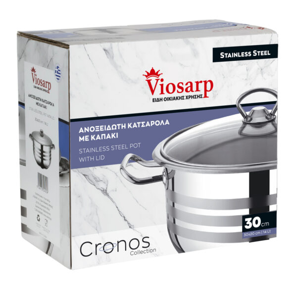 ΚΑΤΣΑΡΟΛΑ ΑΝΟΞΕΙΔΩΤΗ ΜΕ ΓΥΑΛΙΝΟ ΚΑΠΑΚΙ 30x20cm 14L VIOSARP