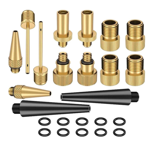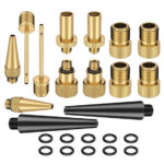 Πλήρες κιτ το οποίο αποτελείται από ακροφύσια φουσκώματος και αντάπτορες για βαλβίδες. Αυτό το κιτ είναι εξαιρετικό για τρόμπες καθώς σας επιτρέπει να φουσκώσετε διαφορετικά είδη φουσκωτών, όπως μπάλες, στρώματα, παιχνίδια, ελαστικά ποδηλάτου κλπ.