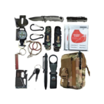 Πλήρες κιτ επιβίωσης έκτακτης ανάγκης σε πρακτικό τσαντάκι, ιδανικό για τα χόμπυ σας όπως κυνήγι, ορειβασία, πεζοπορία κτλ, με σετ εργαλείων και ειδών πρώτων βοηθειών.