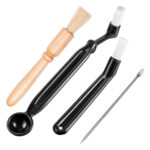 Κιτ καθαρισμού καφετιέρας που αποτελείται από 3 βούρτσες καθαρισμού κατάλληλες για διαφορετική εφαρμογή και 1 κουτάλι για τη διακόσμηση latte.