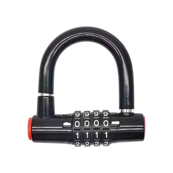 Κλειδαριά ποδηλάτου, ατσάλινη, με κωδικό ασφαλείας 4 ψηφίων και ελαστική προστατευτική επένδυση.