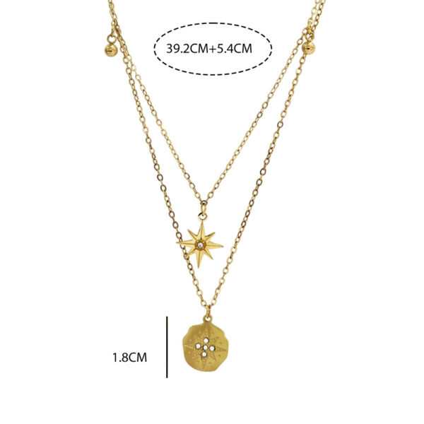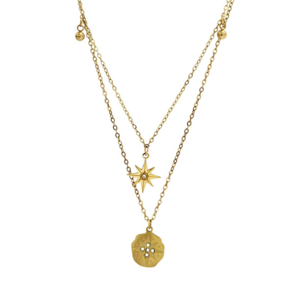 Διαθέτει Διπλη Αλυσίδα Με Μικρές Μπίλιες Στην Πρώτη Και Πολυάκτινο Αστέρι Με Ζιργκόν(Κοντή) Και Κρεμαστό Κυκλικό Στοιχείο Με Χάραξη Και ζιργκόν Στη Δεύτερη(Μακριά)Αλυσιδα