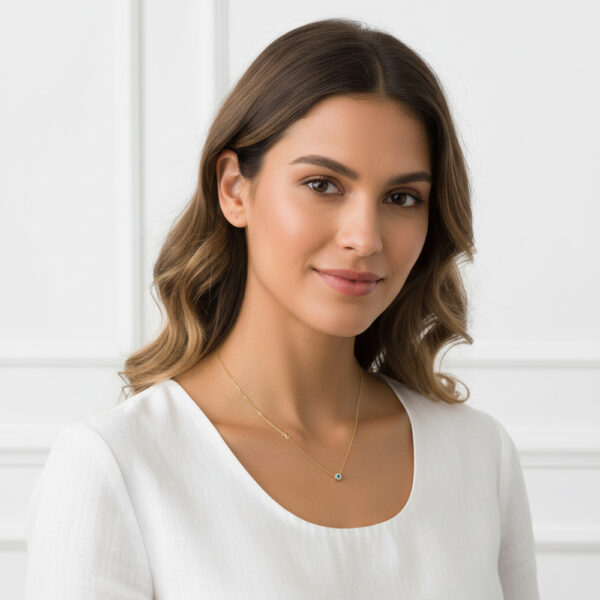 Λεπτεπίλεπτο και διαχρονικό, αυτό το κολιέ από ατσάλι σε χρυσή απόχρωση διαθέτει λεπτή αλυσίδα και μικρό στρογγυλό ματάκι σε αποχρώσεις του λευκού και του μπλε. Διακριτικό αλλά συμβολικό, προσφέρει καθημερινή προστασία και ταιριάζει εύκολα με κάθε εμφάνιση, είτε φοριέται μόνο του είτε σε layering με άλλα κολιέ. Ανθεκτικό, αντιαλλεργικό και ιδανικό για δώρο ή προσωπική χρήση.