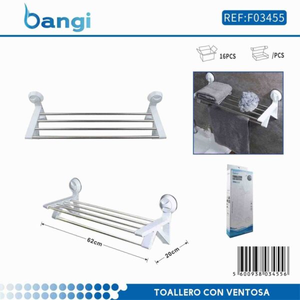 Κρεμάστρα πετσέτας μπάνιου με μεταλλική ράγα inox και πλαστικές βάσεις υψηλής ανθεκτικότητας. Εύκολη τοποθέτηση με ισχυρές βεντούζες, χωρίς να απαιτείται βίδωμα.