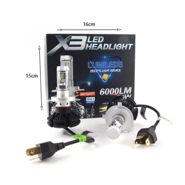 Λάμπα αυτοκινήτου H4 Ψυχρό Λευκό – X3 LED Headlight 6000LM 50W H4