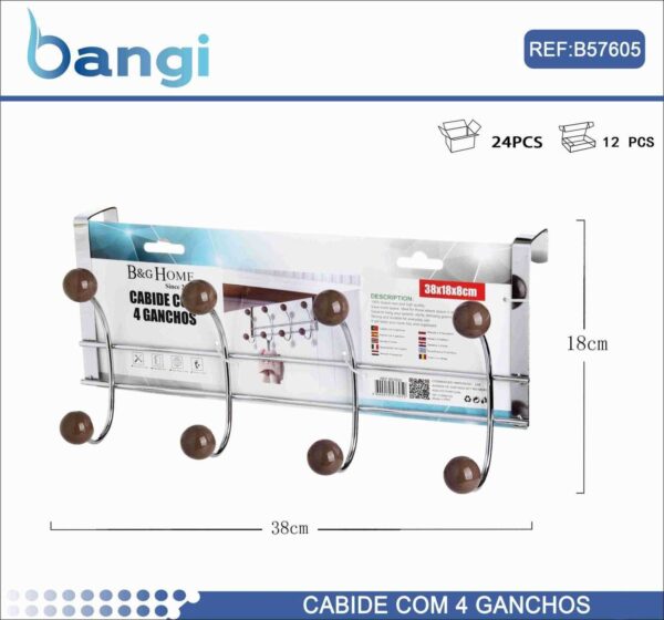 Μεταλλική κρεμάστρα πόρτας 4 θέσεων – 57605