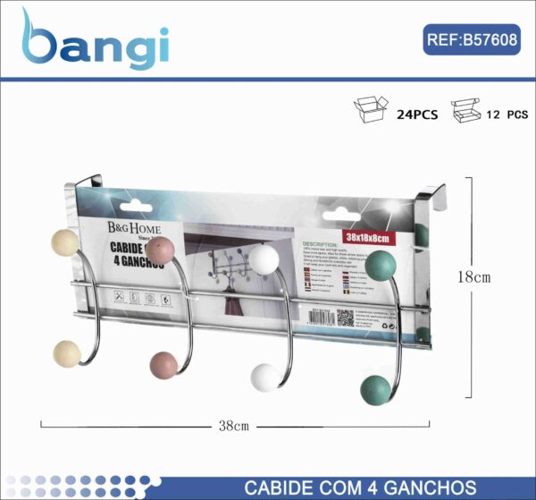 Μεταλλική κρεμάστρα πόρτας 4 θέσεων – 57608