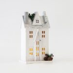 ΞΥΛΙΝΟ ΣΠΙΤΑΚΙ ΦΩΤΙΖΟΜΕΝΟ, ΛΕΥΚΟ-ΓΚΡΙ, 3 LED 5mm, ΜΠΑΤΑΡΙΑΣ, ΘΕΡΜΟ ΛΕΥΚΟ, 17x11x31cm, IP20