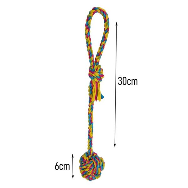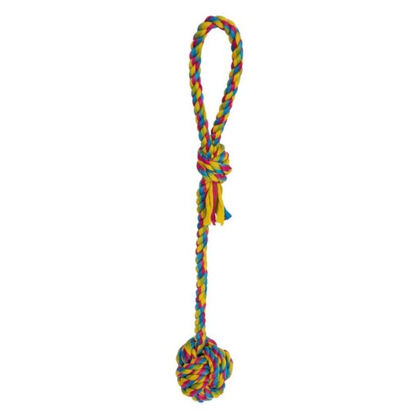 Κατασκευασμένο από ανθεκτικό βαμβακερό σχοινί, αντέχει στο έντονο παιχνίδι και συμβάλλει στον καθαρισμό των δοντιών και των ούλων. Η θηλιά το καθιστά εύκολο στο κράτημα τόσο για τον σκύλο όσο και για τον ιδιοκτήτη.
