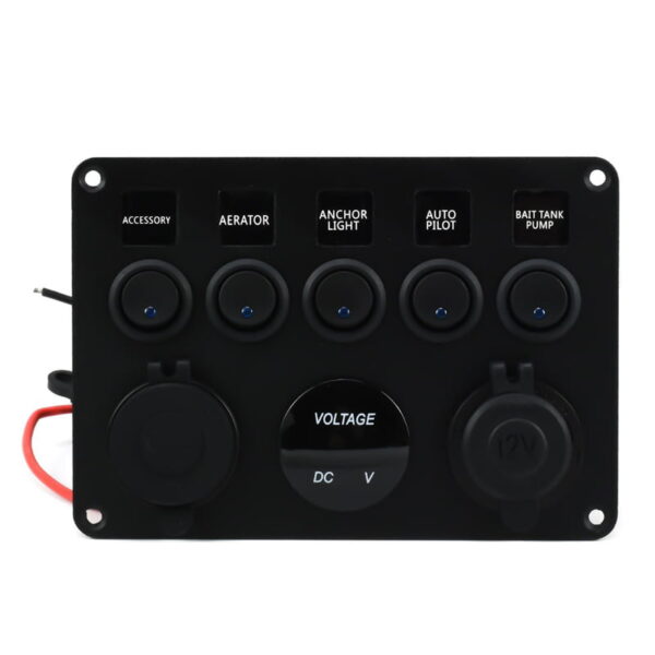 Πολυλειτουργικό Πάνελ Αυτοκινήτου 2 θύρες USB, Βολτόμετρο και 5 Διακόπτες Α90 – Car USB Charger