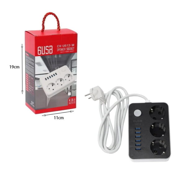 Πολύμπριζο 3 θέσεων και 6 θύρες USB 4.1Α CX-U613 – 6USB 3 Power socket