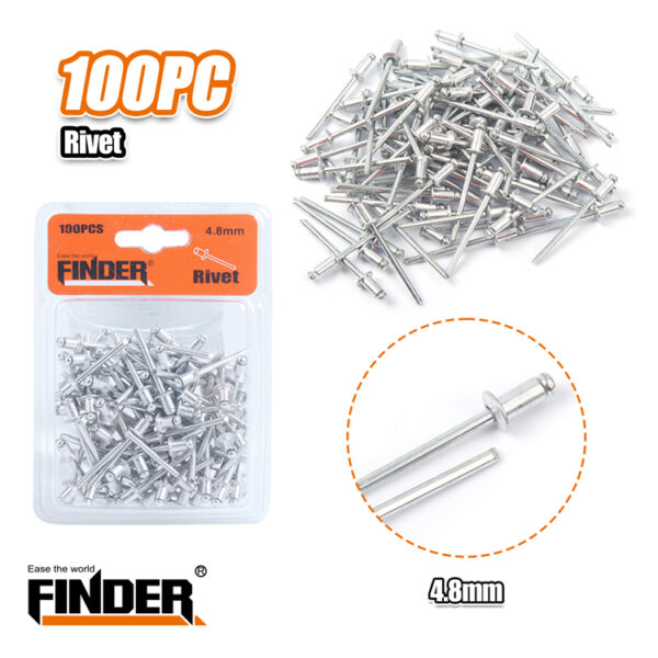 Πριτσίνια αλουμινίου, σετ 100 τεμάχια, μεγέθους 4.8mm – Finder.