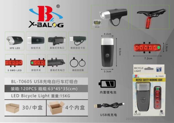 Επαναφορτιζόμενο φως ποδηλάτου LED – T0605 με εμπρόσθιο προβολάκι και Backlight