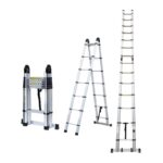 Πτυσσόμενη πολυμορφική σκάλα με στιβαρή κατασκευή αλουμινίου, και εύκολη αποθήκευση. Συνολικό μήκος έως 3.8m, ρυθμιζόμενο, με blocks ασφαλείας.